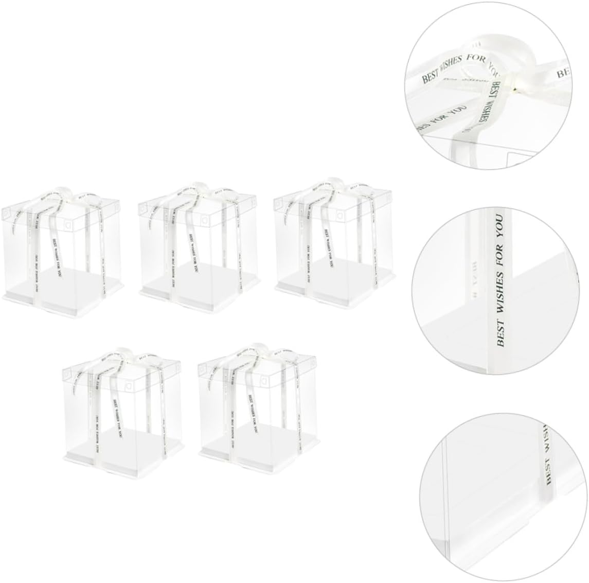 Package Include 5 x cake packaging boxes Features - Applicable: for 8 inch cake Cake Packing Case. -Product Info:Birthday Cake Box - Material: Food grade white card, PET. - Color: White ( color for ribbon). - Size: 26.00X26.00X18.00cm/10.22X10.22X7.07inch. - They can be used for shower, birthday party or other party Square Storage Container. - Featuring reusable, it can be used for times and easy to clean Cake Carrier. - Transparent design can show off your cakes inside without exposing to the air Cake Storage Container. - , environmental protection, safe and . - Simple and practical design, and easy to use and carry Cake Wrapping Case.Goods InformationSquare Storage Container This cake box can help you to pack your cakes and transparent design allows you see the cake directly.Baking Cake Container Environmentally friendly material, safe and to use.Cake Carrier With the ribbon handheld design, this cake box is very convenient to carry.Cake Wrapping Case This is a practical cake box.Cake Storage Container Sealing design can prevent leakage effectively