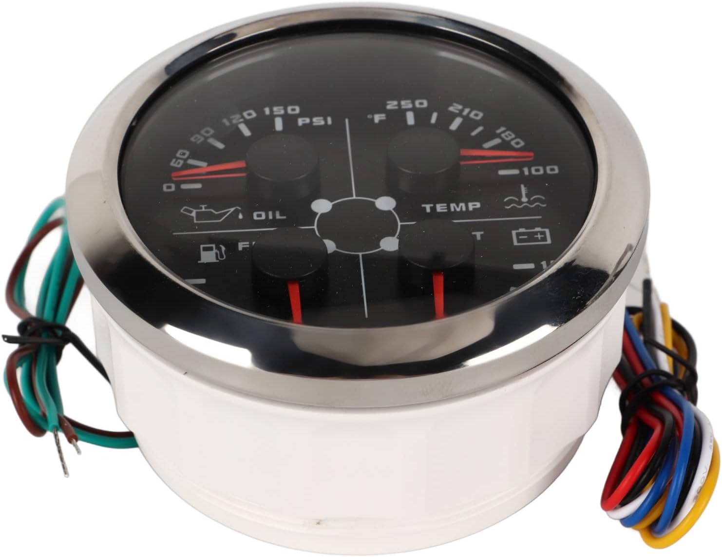 1. 4 in 1 gauge: Multi-function pointer gauge can display oil level, oil pressure, water temperature and voltage, real-time monitoring.2. Universal: Oil level, oil pressure, water temperature, voltmeter are applicable to refitting RVs, yachts, fishing boats, ships, motorcycles, cars, etc. .3. Advantages: The multi-function instrument has the advantages of high and detection, excellent stability and short start-up time.4. Material: The 4 in 1 dashboard is made of 316L stainless steel frame and anti-fog glass. and , can adapt to various environments.5. Easy installation: DC 9-32V working voltage, low power consumption and long service life. The installation dimension is 85mm, and the installation and removal is simple.Specification:Item type: 4 in 1 gauge.Material: ABS, stainless steel, anti-fog glassOperating voltage: 9-32 V DC.Installation size: approx. 85mm/3.35inFunction: display oil level, oil pressure (BAR/PSi), water temperature (?/?) and voltage.Application: RV, yacht, fishing boat, boat, motorcycle, automobile modification, etc.How to use:Open a hole with a diameter of 85mm on the instrument mounting plate;Make sure there is at least 55mm of space behind the dashboard.Packing list:Gauge 1x4 in 11 x Manual