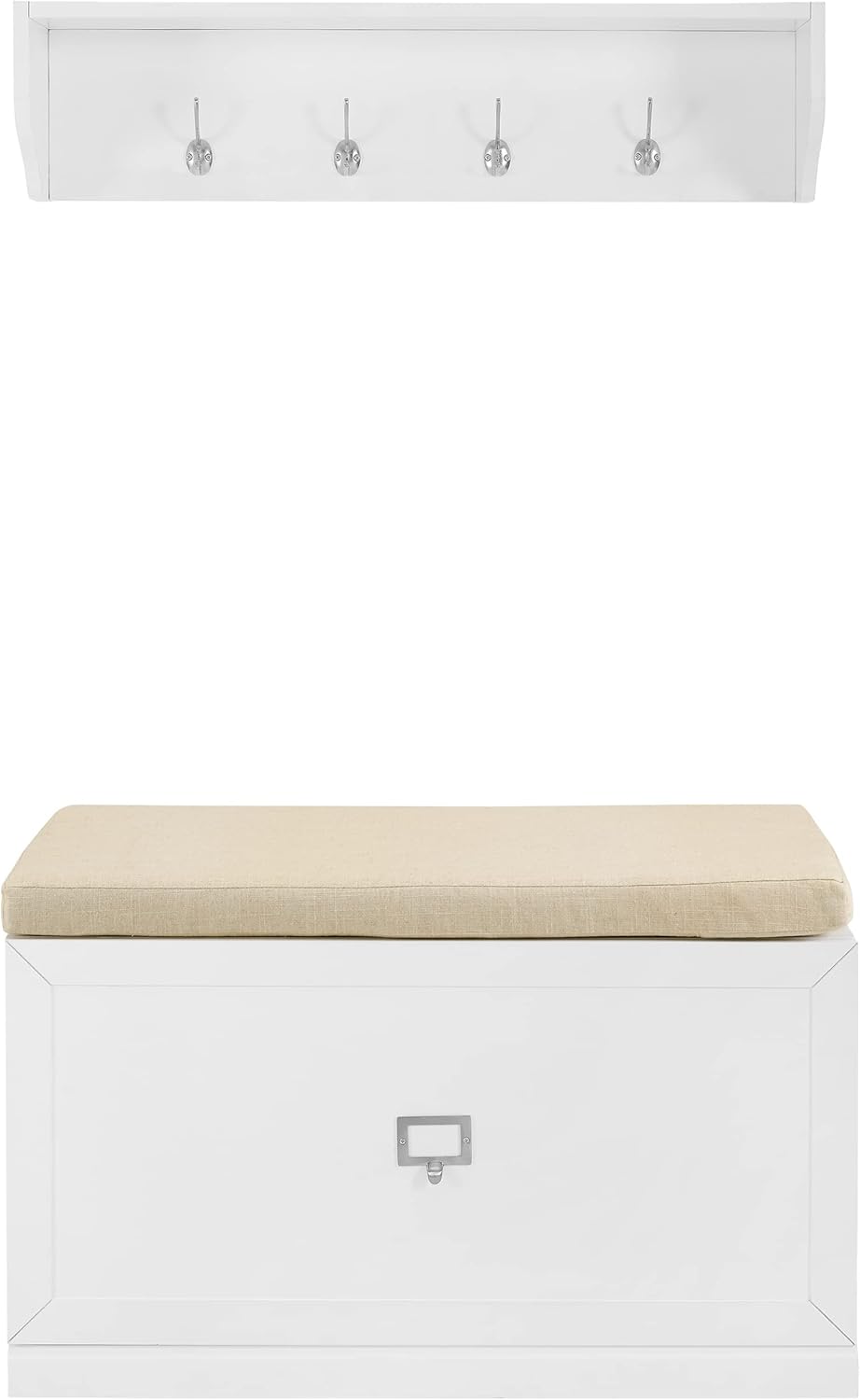 Even the smallest entryway needs a landing zone for jackets, shoes and book bags. Look no further than the Harper 2-Piece Entryway Set. This set combines an open shelf with four double hooks and an entryway bench with a large storage drawer. The open shelf is ideal for décor or small storage baskets, while the entryway bench offers a cushioned seat just right for sitting down to slip off your shoes at the end of the day. Featuring label holder hardware, the storage drawer can be customized with personal labels. The Harper 2-Piece Entryway Set can pair modularly with other items in the collection and create the look of genuine built-in storage.