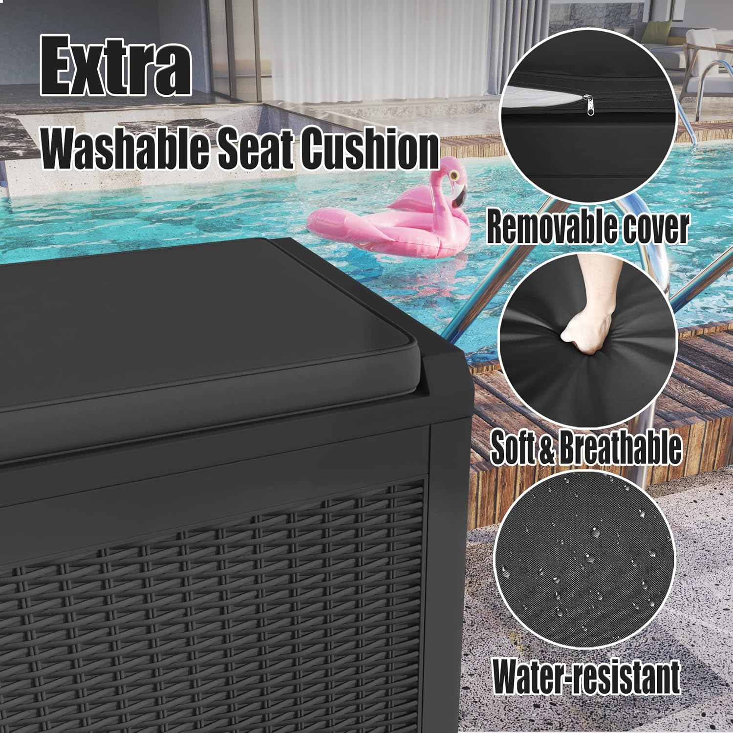 Greesum 100 Gallon Resin Deck Box Feature: With a 100-gallon storage capacity, it's perfect for organizing your outdoor space. It can hold tools, toys, furniture or other outdoor items to ensure your backyard, pool and lawn stay neat and tidy. Perfect for outdoor backyard, garden, patio, utility room. Storage storage space for multipurpose use. It is easy to assemble by yourself with the help of our kit and installation manual The entire Deck Box components, tools and instructions will be shipped to you in one box. Specification: Material: Resin. Color:Balck Package Dimensions:49"(L) x 25"(W) x 6"(H) Package Weight: 35lbs Pounds Package includes: A tool kit A storage box A manual of installation and usage Notice: There may be some differences between photos and items in term of color because the influence of lighting during the shooting or the settings of the computers’ display screen.