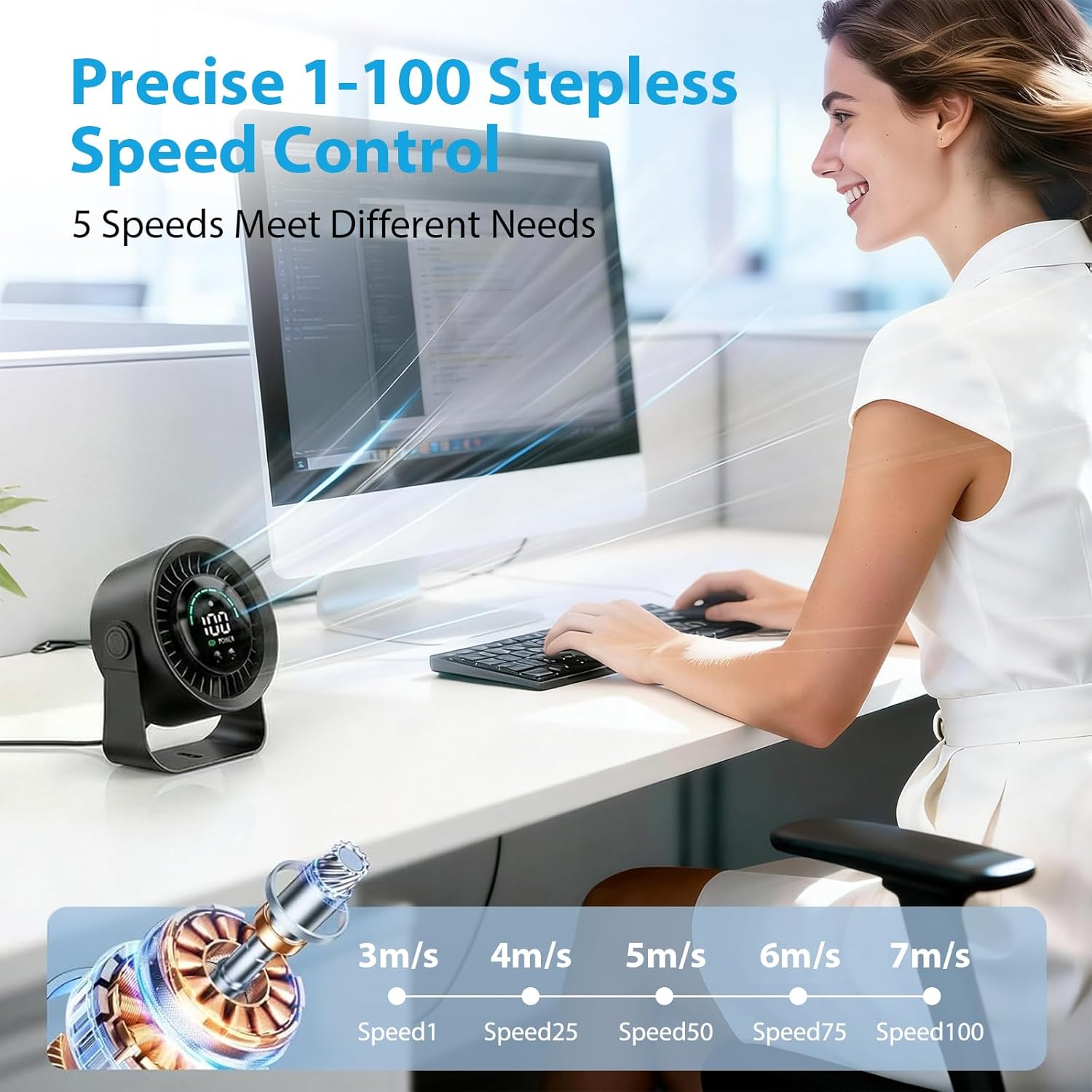 Pedestal Fan, 100-Stepless Speed Quiet Desk Fan with Digital Display, 90° Oscillating Turbo Air Circulator for Bedroom Office, Desktop & Wall Mount Portable Standing Fan