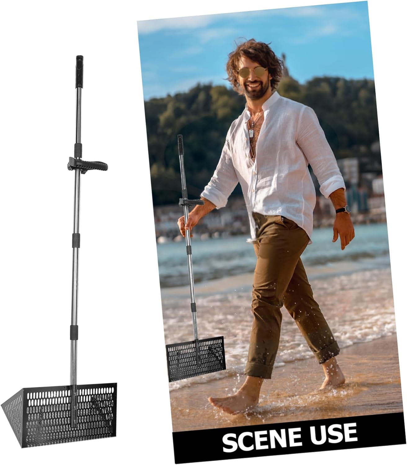 Package List 1 x sand sifter Features -Compact and detachable: designed for easy disassembly, this beach sand sifter is portable and convenient to store, good for on-the-go beach adventures shovel -Adaptable beach setting: whether exploring rocky shores or soft beaches, the sand sifter is ideal for various environments and activities beach shovels tool -Color:Black beach sand scoop -Material:Carbon Steel sand shovels for -Versatile sand sifter: combines the functionality of a sand shovel and sifter, making it a versatile companion for beach treasure hunting sand scoop -Heavy duty construction: built with sturdy carbon steel for durability, capable of handling rough sand and extending the tool's lifespan metal sand scoop -Size:141.00X40.00X18.00cm/55.41X15.72X7.07in shovel tool -Unique designed: unique sieve design ensures quick and effective filtering of sand, uncovering treasures like seashells beach shovels for Goods Description sand scoop Its robust construction and detachable design offer both durability and portability.portable beach shovel Good for sifting through sand to discover shells, conch and other treasures, this sand sifter tool is essential for anyone who loves exploring the beach.shovel for beach Enhance your with this carbon steel sand sifter