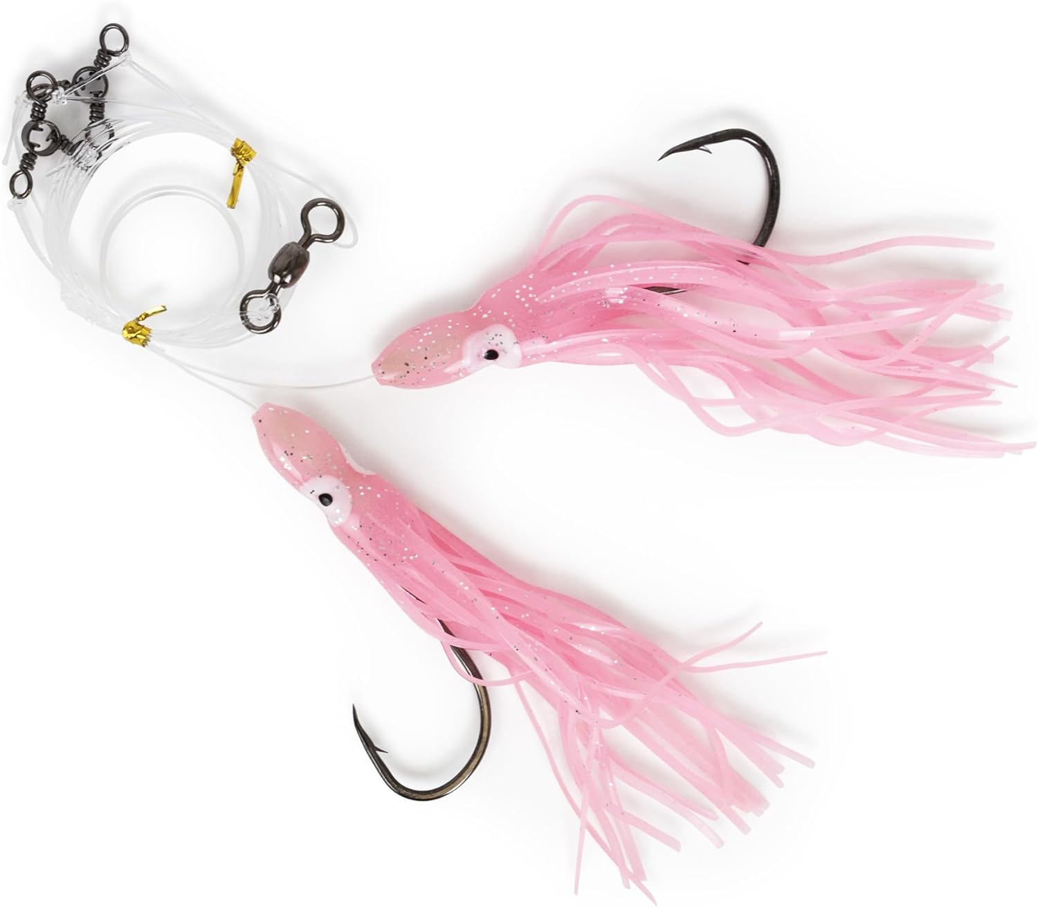 The Uncle Mo's Tackle Deep Sea Tile Fish Hi Lo Fishing Rig is built for serious deep-sea fishing, featuring a 10/0 snelled octopus hook and a heavy-duty 3-way swivel to prevent twists and tangles. The pink & glow color combination with glow-in-the-dark skirts ensures maximum visibility in deep waters, making it easier to attract fish. Ideal for targeting tilefish and other deep-sea species, this rig is perfect for both novice and experienced anglers. Available in 1, 5, and 10 pack options, it’s designed to withstand the toughest saltwater conditions. Whether you’re fishing in the depths or at night, this rig is your go-to tool for success. Add the Tile Fish Hi Lo Fishing Rig to your gear and step up your fishing game.